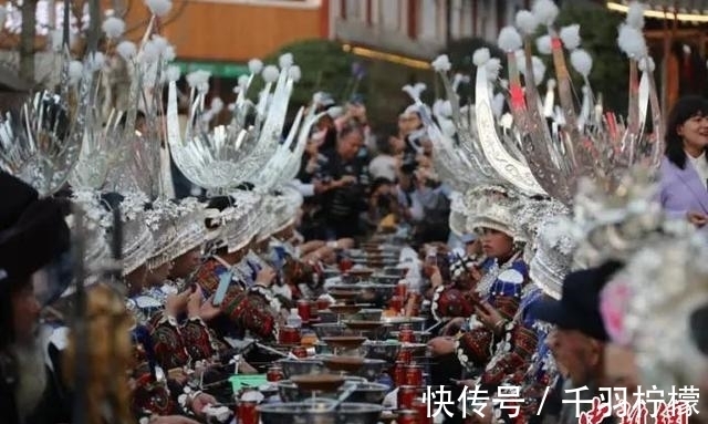 资料图:苗族服饰用餐。李玉斌摄